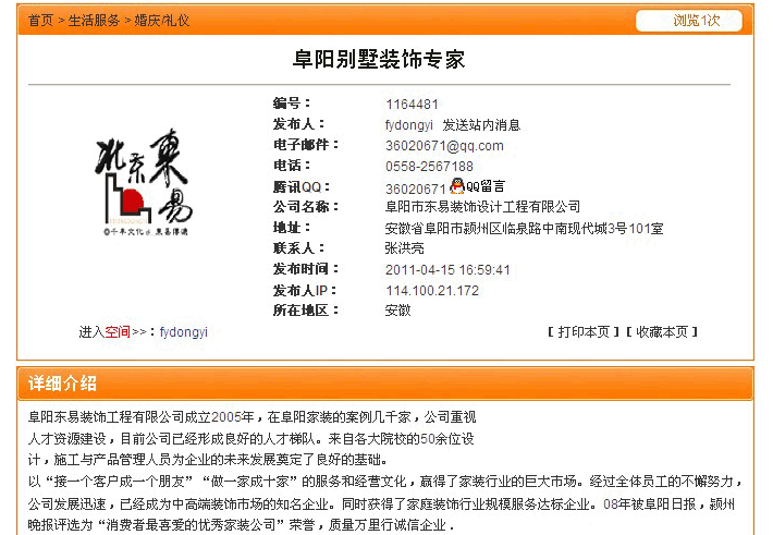 阜陽東易裝飾工程公司在書生商務網的商鋪